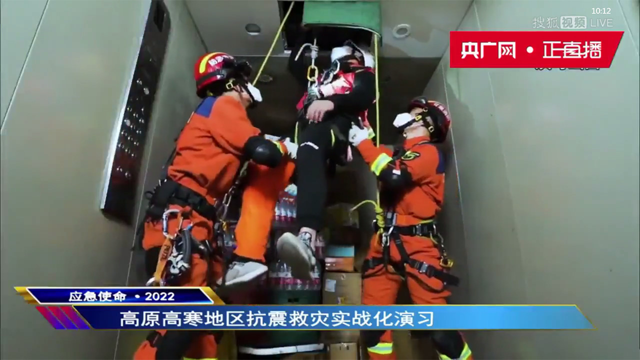 消防員架設多功能救援支架,構設繩索救生系統,兩名被困者依次出井脫險!蘭州德利泰多功能救援支架裝備,亮相“應急使命2022”高原高寒地區抗震救災實戰化演習!
