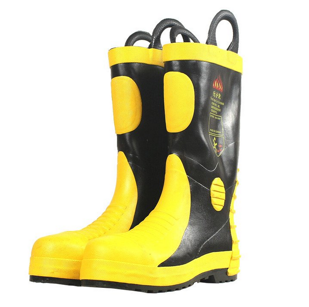 消防員滅火防護膠靴是消防員常規個人防護裝備。穿著該靴可進入一般火場、事故現場進行滅火、救援工作。但在有強腐蝕性液體、氣體存在的化學事故現場;有強滲透性軍用毒劑、生物病毒存在的事故現場;帶電的事故現場等,不能提供有效的保護,并嚴禁在上述場所使用。